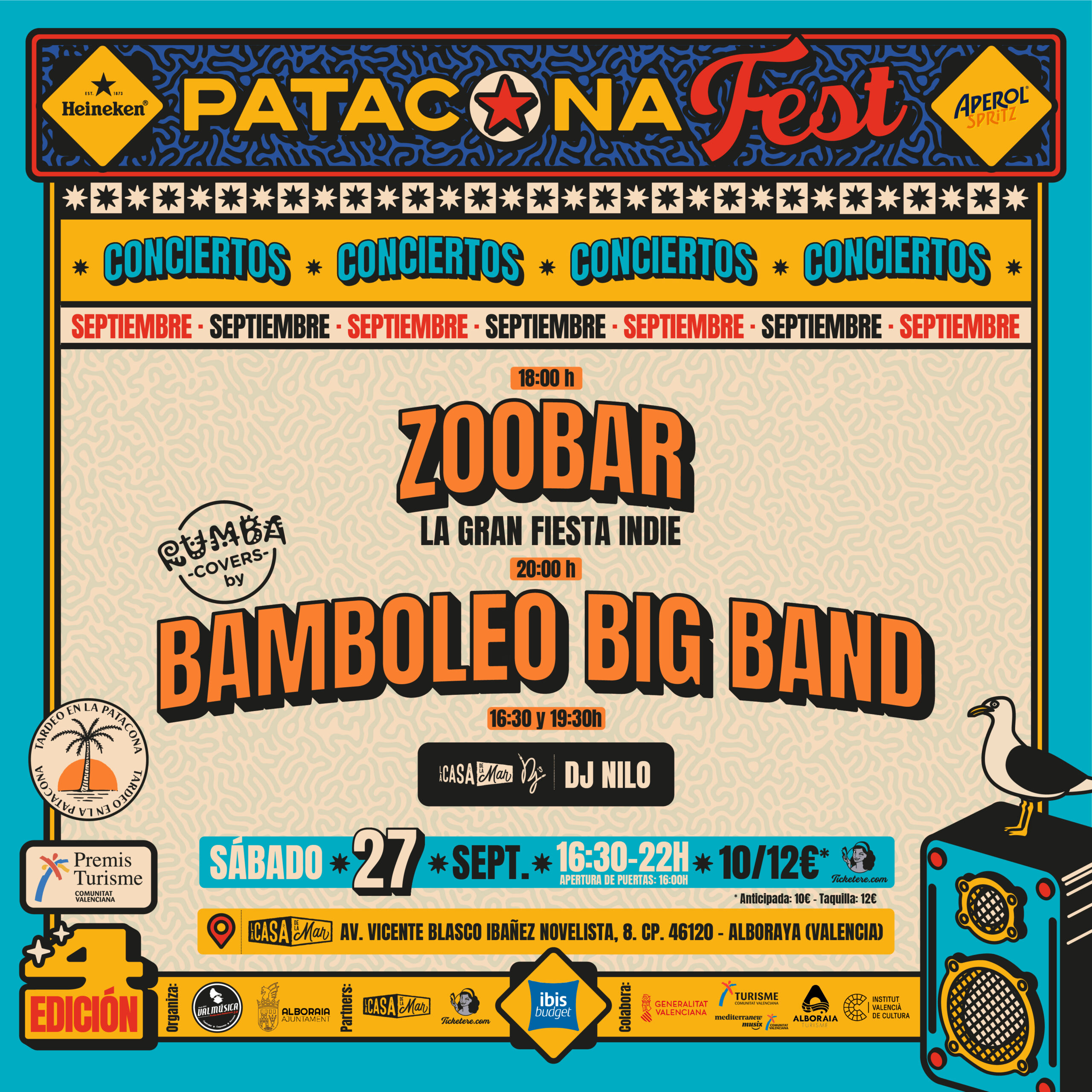 🏝️TARDEO PATACONA:BAMBOLEO BIG BAND con RUMBACOVERS + ZOOBAR: LA GRAN FIESTA INDIE en LaCasa de la Mar 🌴🔥